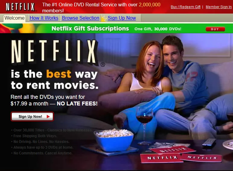 Zákazníky oslovili geniálním tahem: Neúčtovali si poplatky za pozdní vrácení filmů. Filmoví fanoušci totiž byli tou dobou pořádně naštvaní na Blockbuster a podobné videopůjčovny, které z těchto poplatků v podstatě žily a zákazníka sedřely z kůže, pokud film nevrátil včas. Jediným pravidlem Netflixu bylo, že dokud nevrátíte předchozí film, nemůžete si půjčit další.